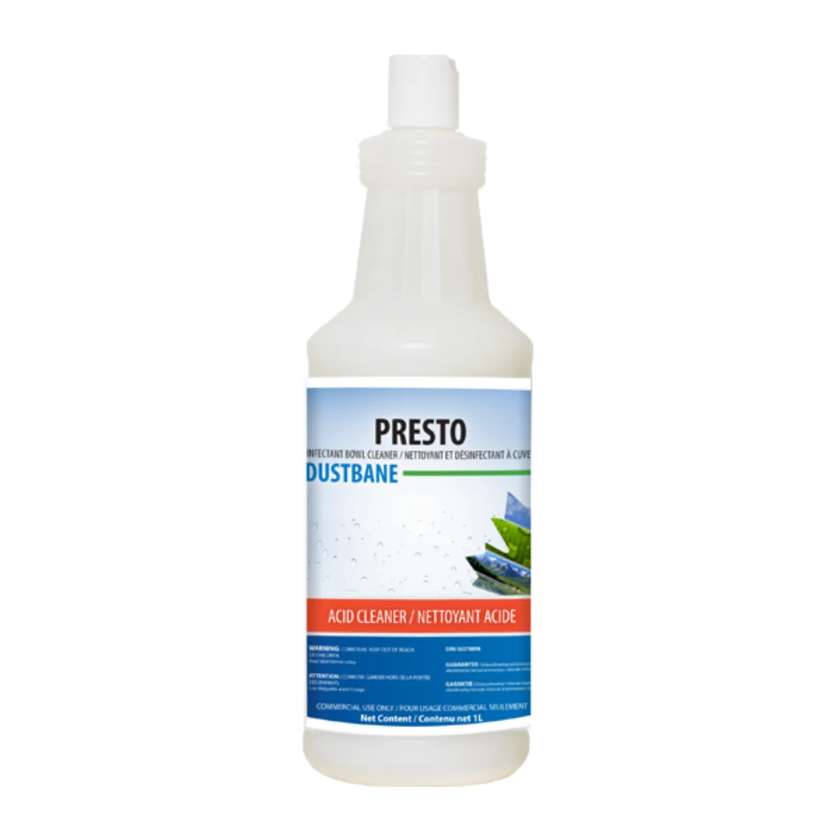 Un 10% nettoyant à base d’acides qui enlève efficacement la rouille, les taches et les dépôts d’eau dure. Il nettoie et désinfecte en une seule étape. Sécuritaire et n’endommage pas la plomberie et les systèmes de fosses septiques.