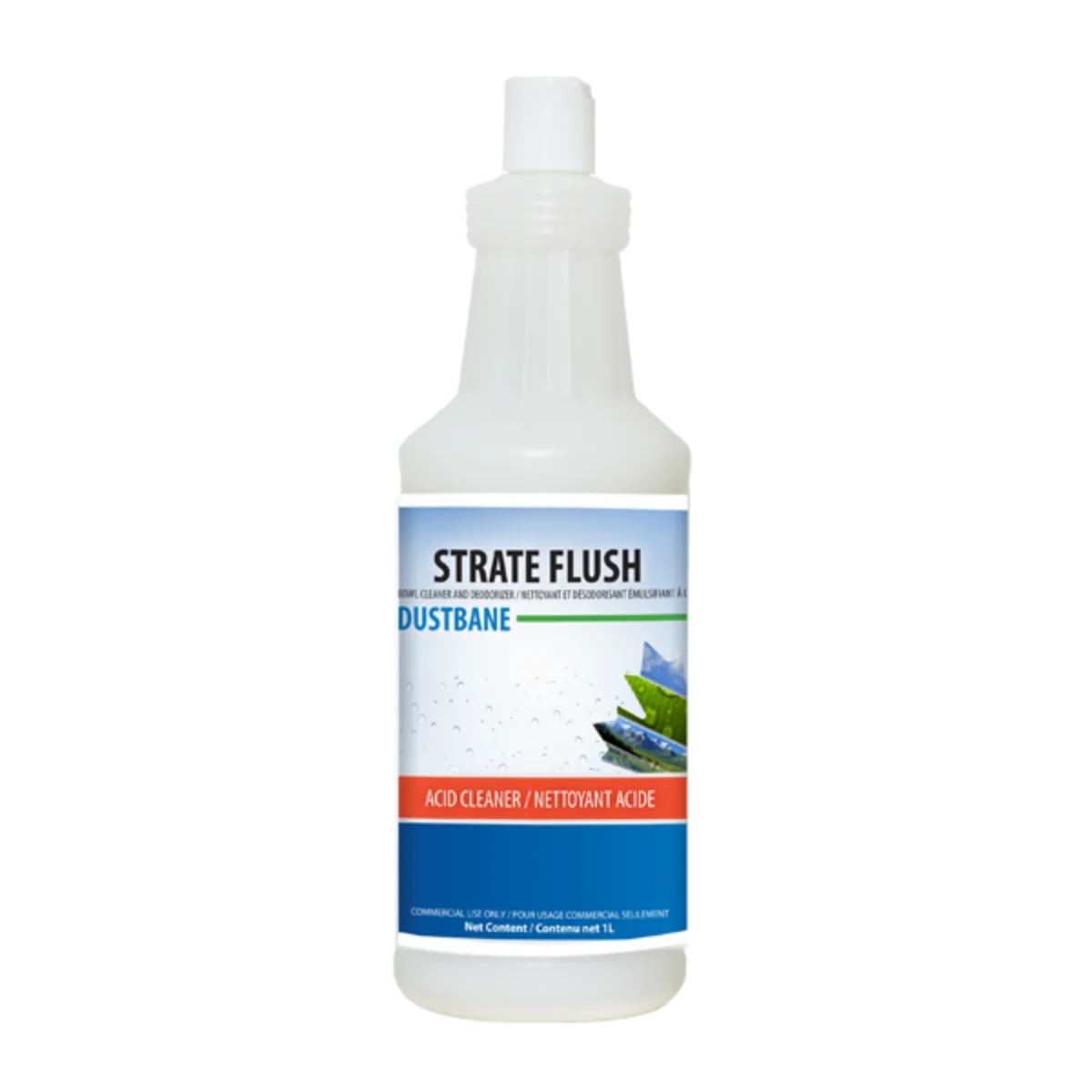 En une seule opération, Strate Flush nettoie, désodorise, détruit les dépôts calcaires, enlève les taches et dissout la rouille. Sécuritaire et n’endommage pas la plomberie et les systèmes de fosses septiques. 23% HCl Acide