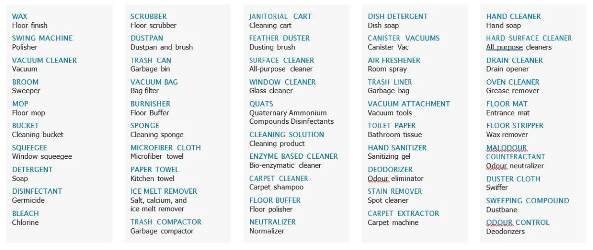 Understanding the difference between cleaning chemicals and equipment can be confusing. Here’s a reliable guide to help you navigate the language of the cleaning industry. Get advice from Dustbane, your trustworthy source for cleaning solutions. Here are the top 50 common cleaning terms: