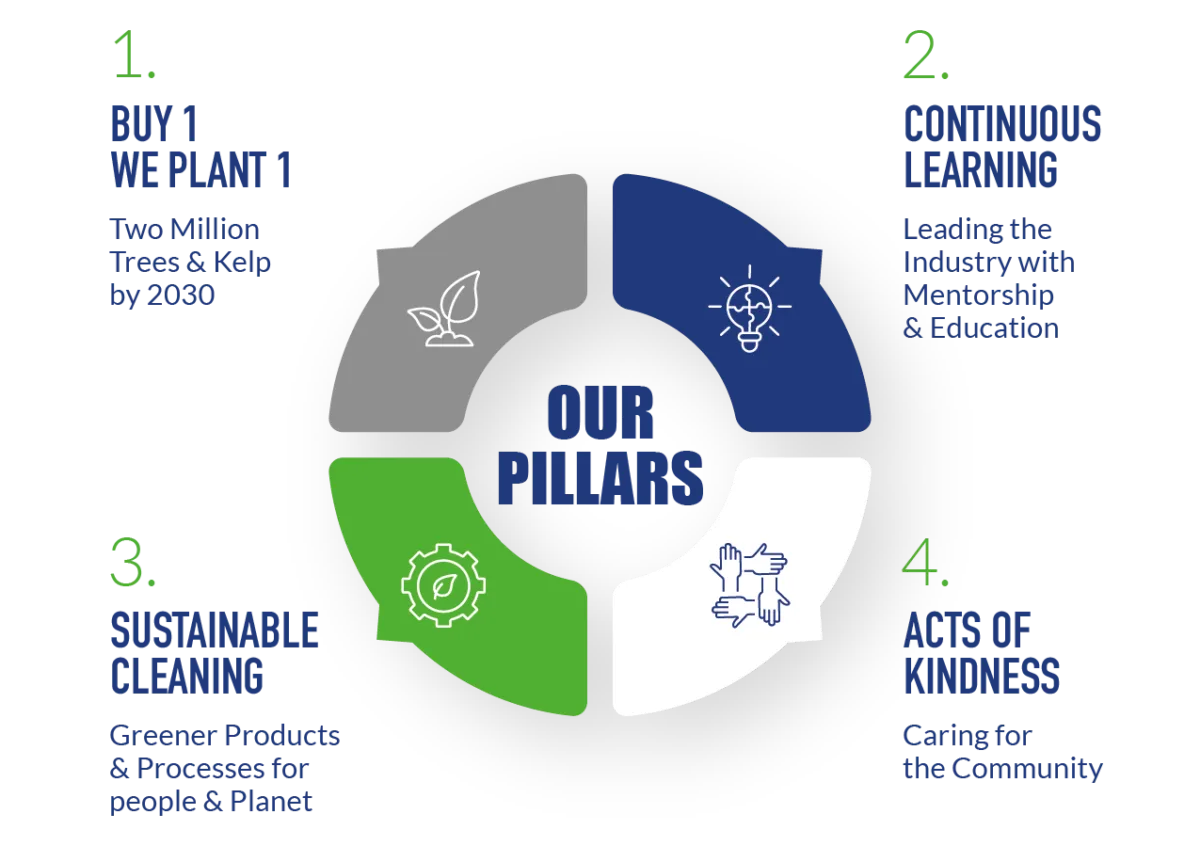 Buy 1 We Plant 1 connects routine cleaning purchases to verified environmental restoration projects aligned with the United Nations Sustainable Development Goals. For every eligible ECOLOGO certified product purchased, Dustbane supports tree or kelp planting initiatives that contribute to carbon sequestration and ecosystem restoration.